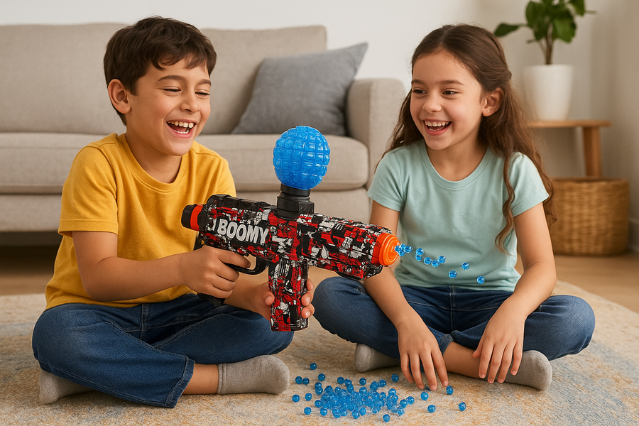 👩 “أنا كنت بقلق من أي لعبة شبه مسدس، لكن بومي مختلف تمامًا. آمن وخفيف، وابني مش سايبه من إيده.”