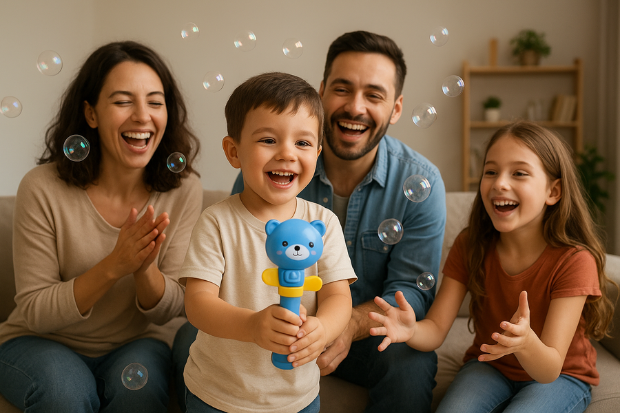 🌟 أول ما وصلتني اللعبة جربناها في البيت… فقاعات في كل مكان والولاد كانوا بيضحكوا من قلبهم، حاجة تفرح بجد.– منى.