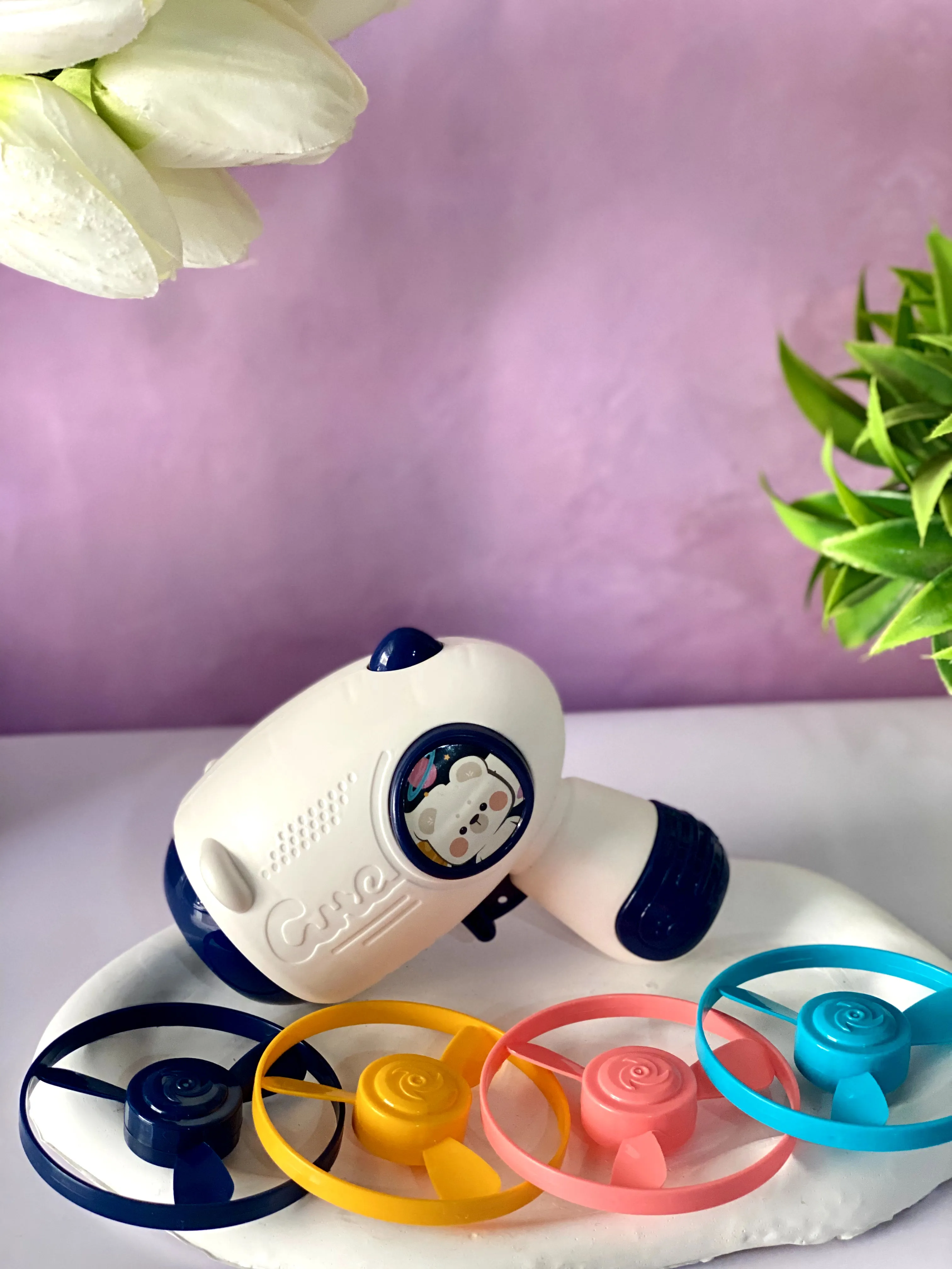 💡 لعبة مسدس إطلاق المراوح الطائرة – لعبة حركية ممتعة، آمنة، وبتشد الطفل فورًا!
