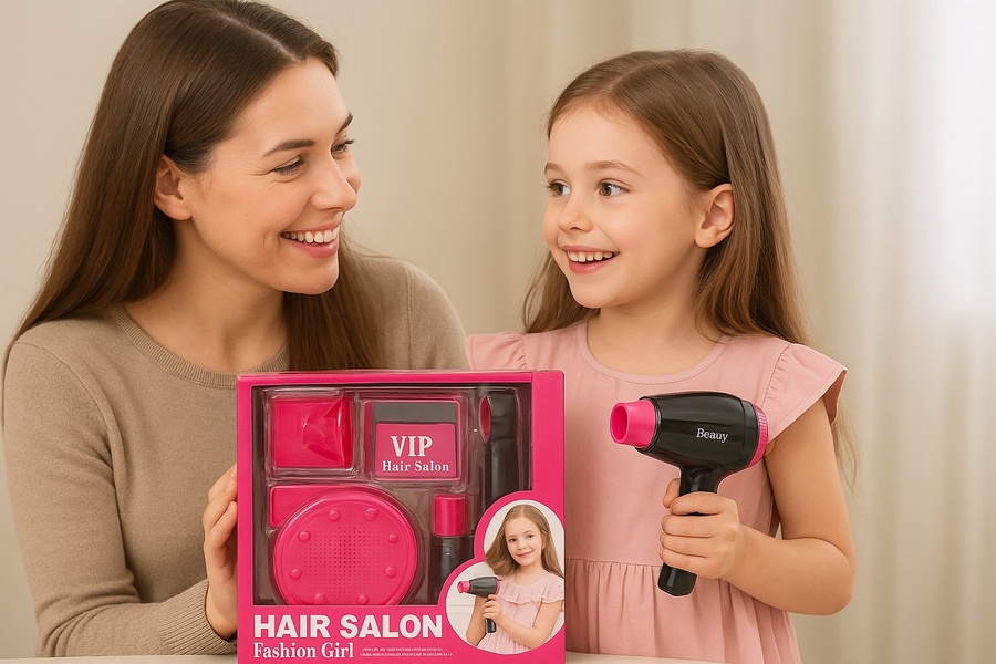 🌟 سيشوار واقعي + أدوات آمنة + كارت VIP خاص بيها