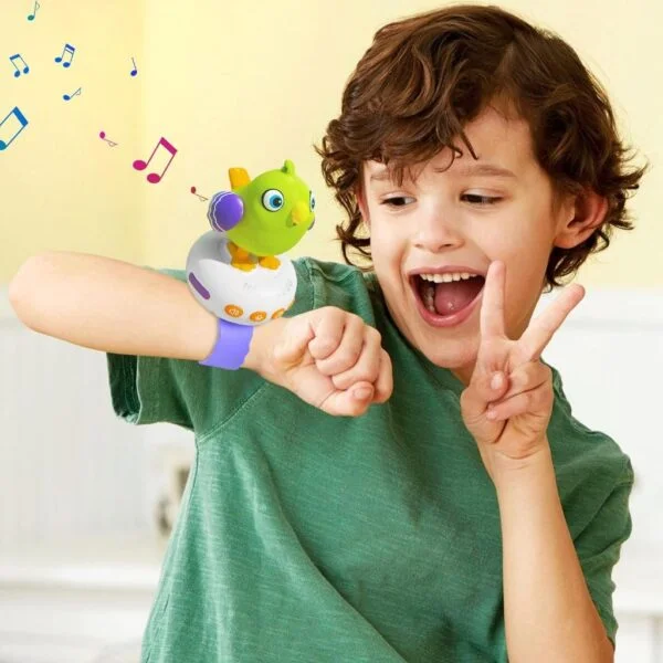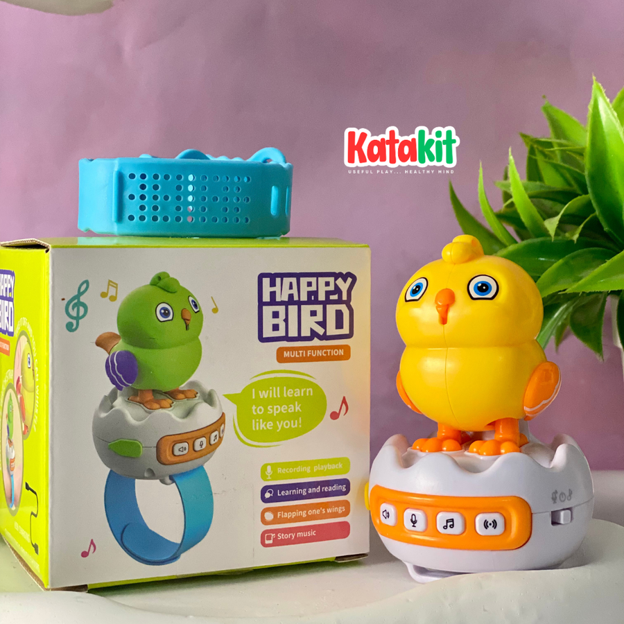 "Happy Bird" بتتكلم، بتكرر، وبتضحك... وكل ده في تصميم لطيف وسهل الاستخدام، على شكل ساعة يلبسها بإيده ❤️⌚