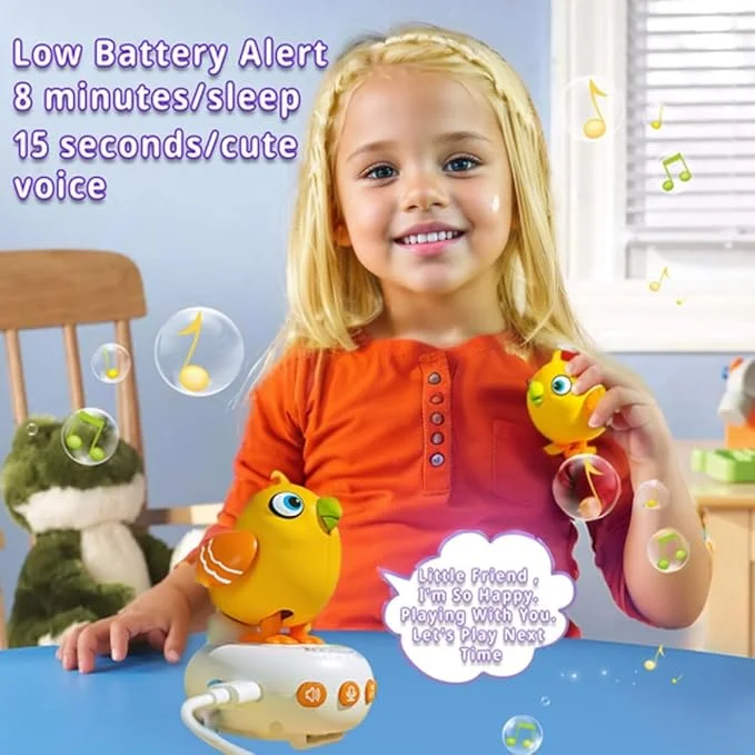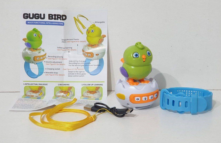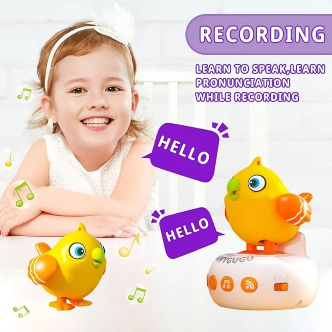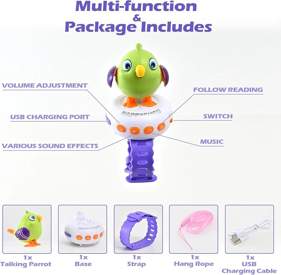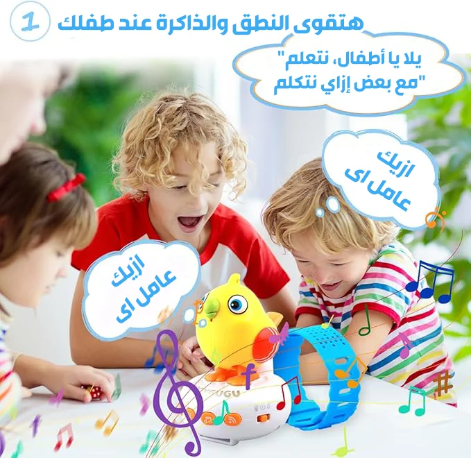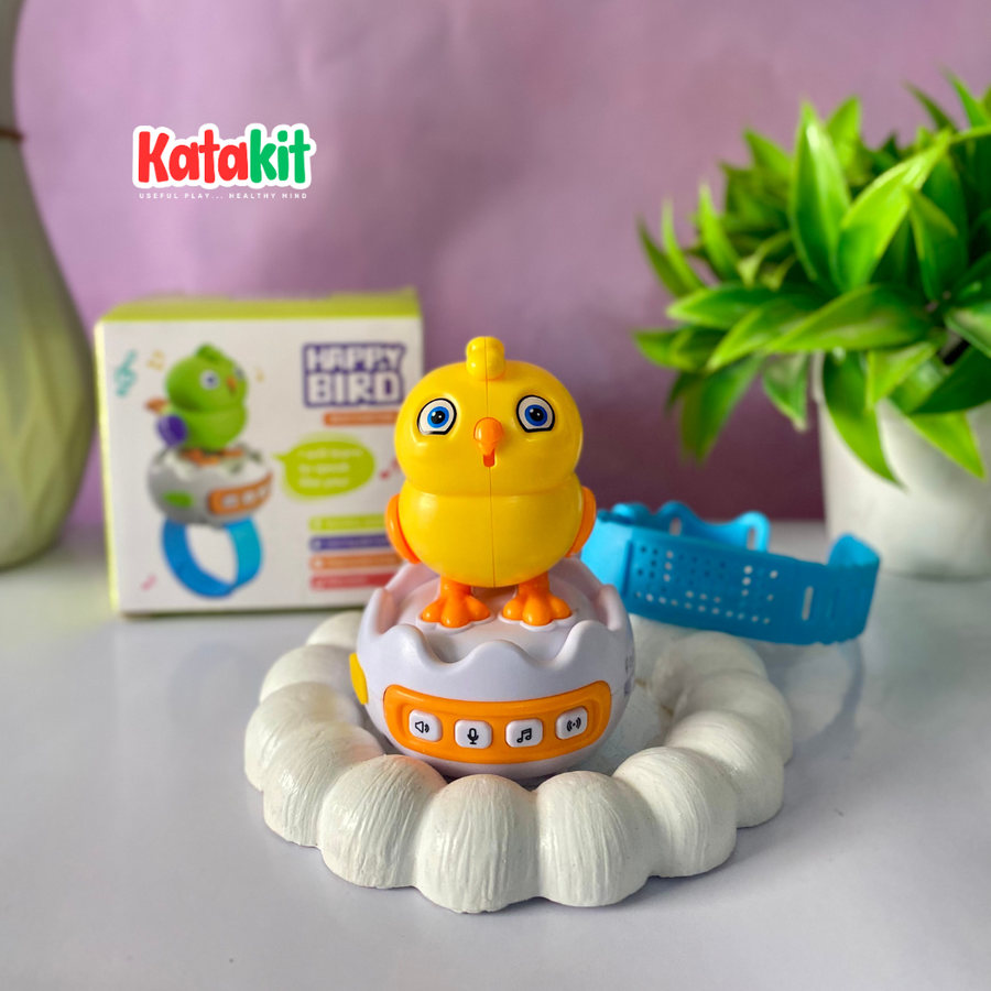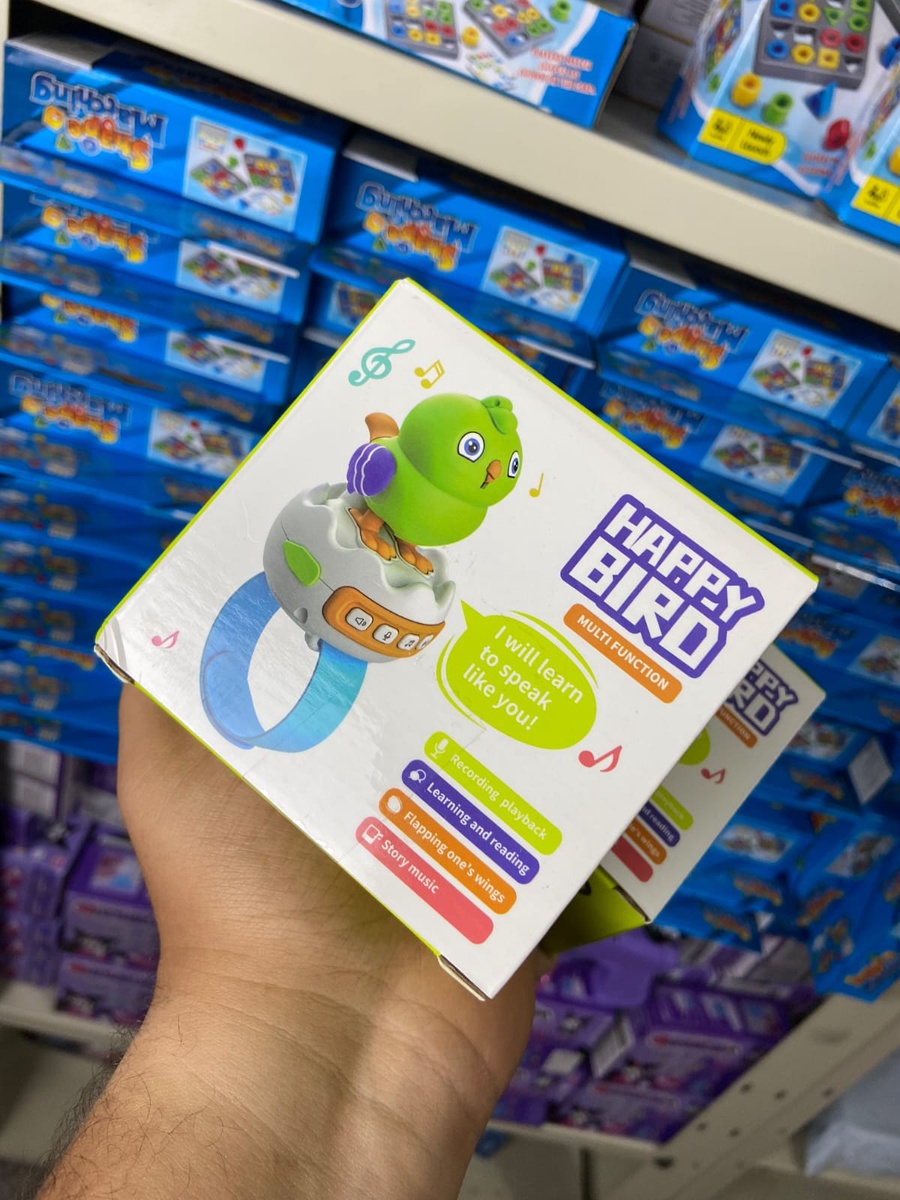 "Happy Bird" بتتكلم، بتكرر، وبتضحك... وكل ده في تصميم لطيف وسهل الاستخدام، على شكل ساعة يلبسها بإيده ❤️⌚