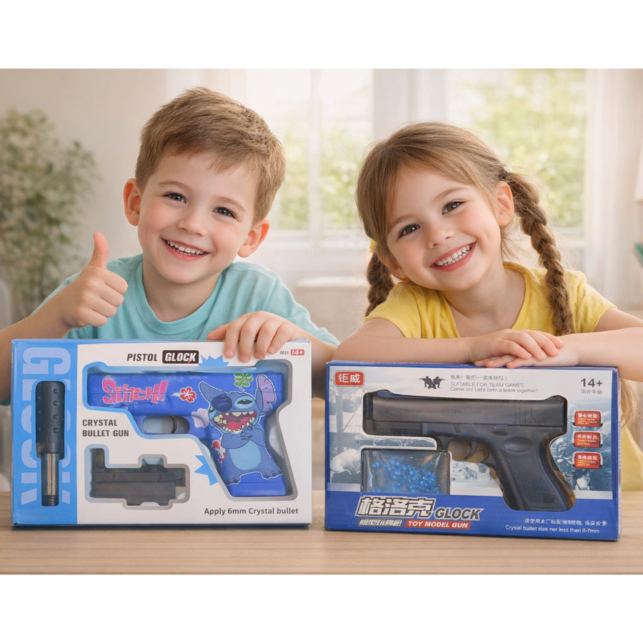 خلّي لعب أولادك يبقى حقيقي وآمن في نفس الوقت! مسدس بابجي 2 في 1 – ليزر + طلقات جل