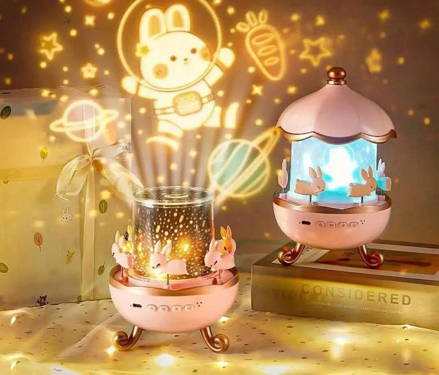 البروجيكتور بيعرض صور أميرات جميلة على السقف والجدران، وبيخلق جو مريح يخلي الطفل ينام بسرعة وبسعادة ❤️