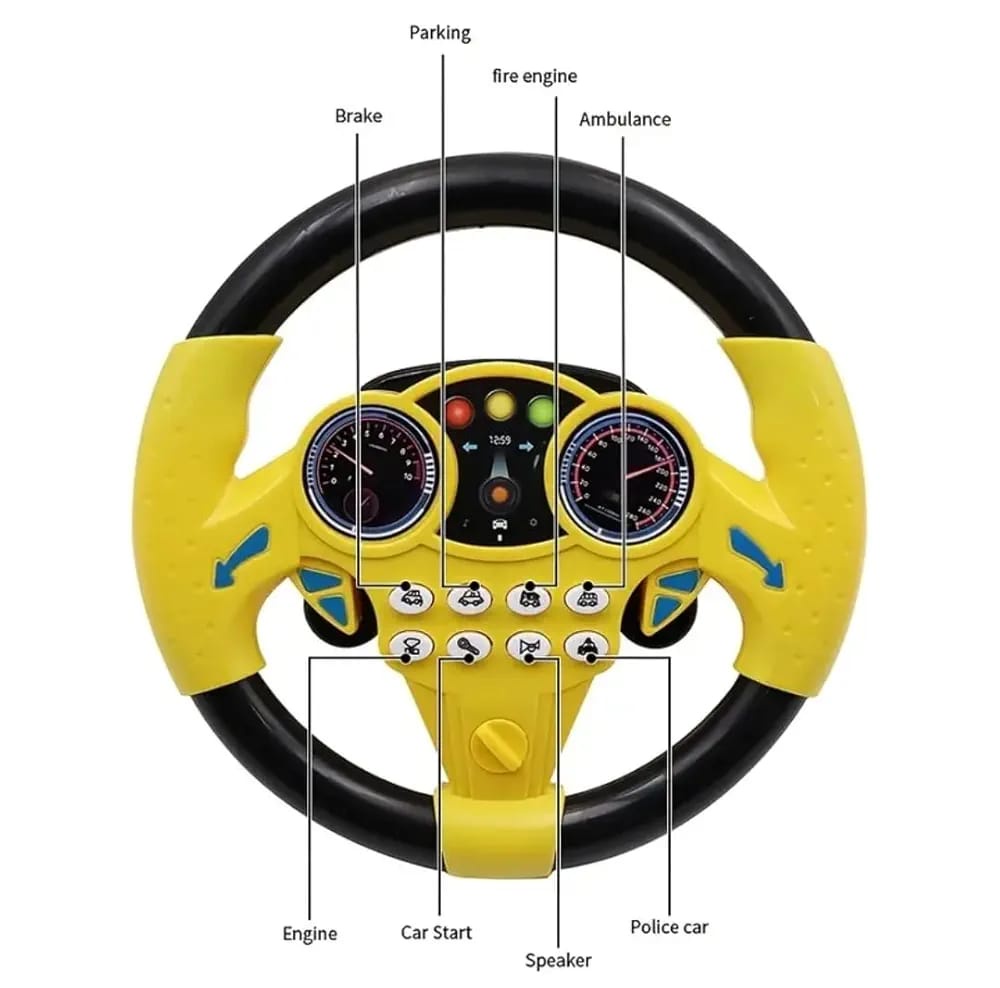 دركسيون الأطفال التفاعلي بيخلي ابنك يعيش أجواء السواقة الحقيقية بصوت المحرك، الفرامل، وأصوات الطوارئ زي الإسعاف والمطافي والشرطة.