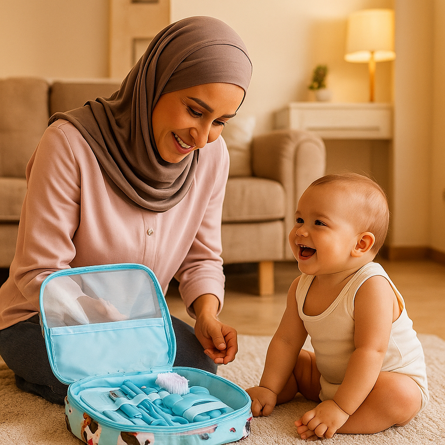 كل ما تحتاجيه منذ لحظة الولادة في شنطة واحدة: أدوات طبية وآمنة، منظمة للسفر، وسهلة الاستخدام — خلي روتين العناية أسهل وأأمن.