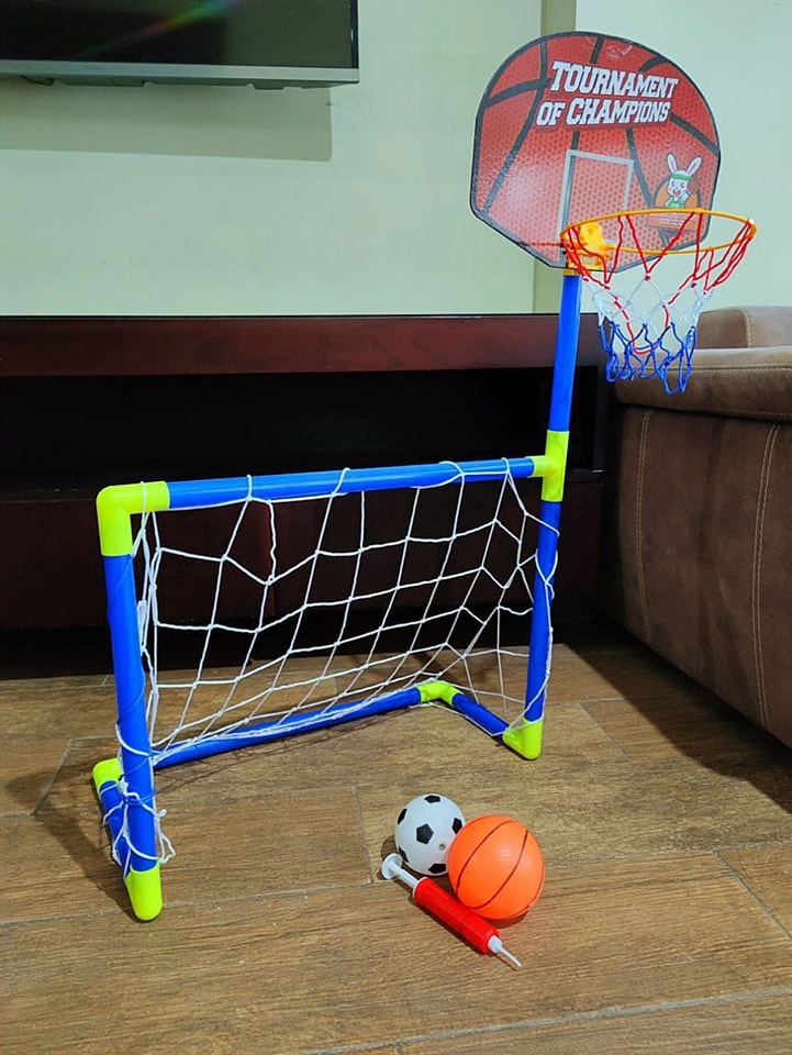 - تصميم 2 في 1: مرمى كرة قدم + حلقة كرة سلة في لعبة واحدة ممتعة.