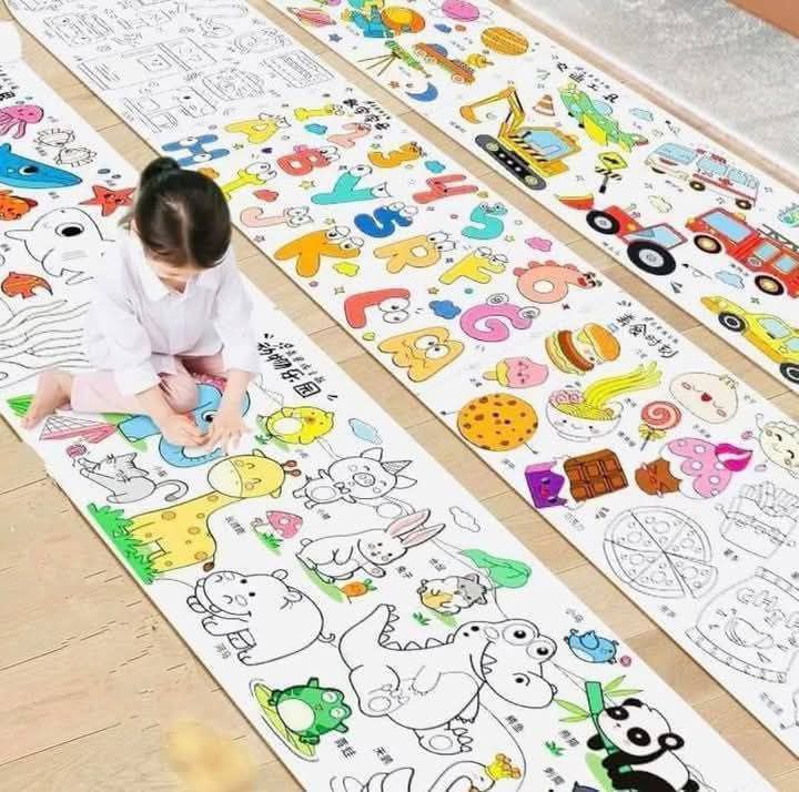 🖼 مساحة كبيرة جدًا للتلوين – 3 متر طول × 30 سم عرض، علشان يلون براحة على الأرض أو السفرة أو حتى الحيطة