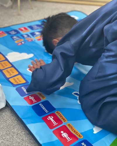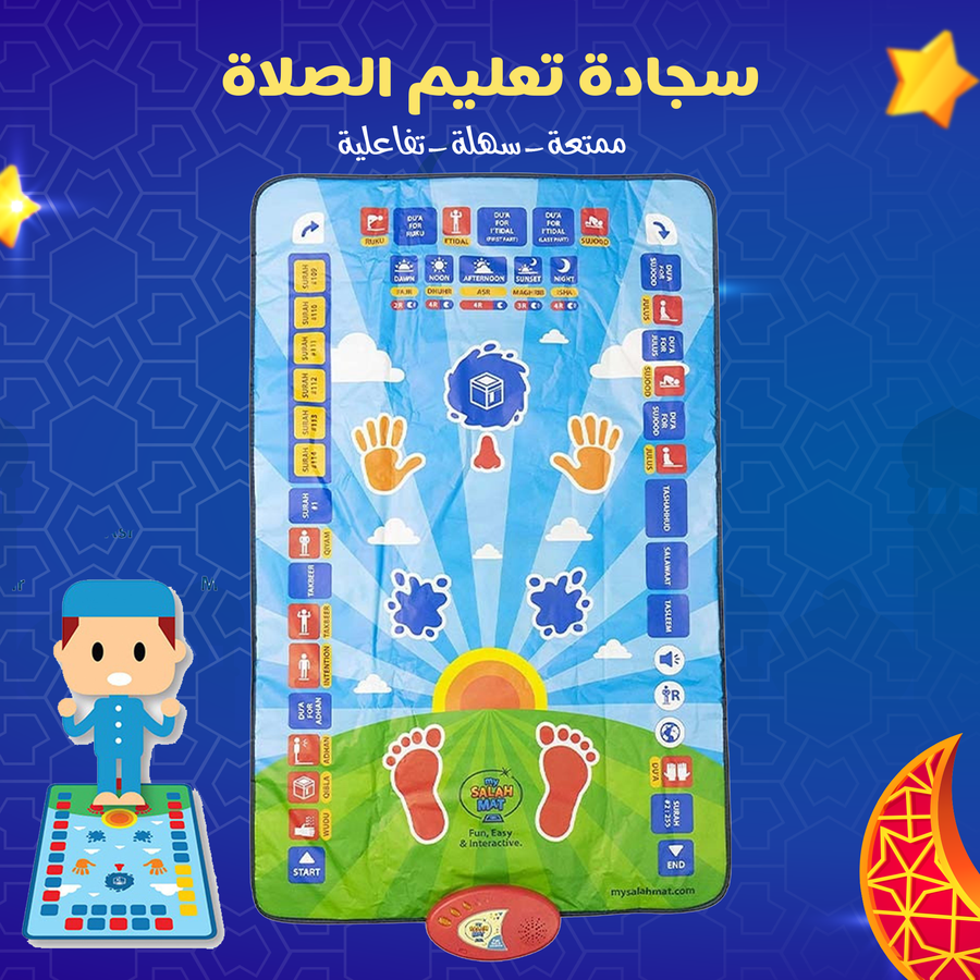 إن استخدام سجادة يجعل تجربة تعلم الصلاة تجربة ممتعة وهادفة، مع تصميمها الملون وأزرارها سهلة الضغط، والأصوات الممتعة