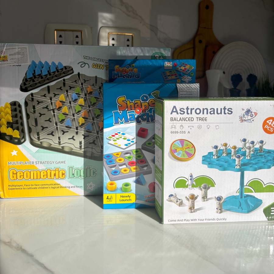 بوكس متكامل فيه ٣ ألعاب بتجمع بين المتعة، الذكاء، والتركيز – للأطفال من عمر 3 سنوات، وكمان الكبار هيستمتعوا بيه!