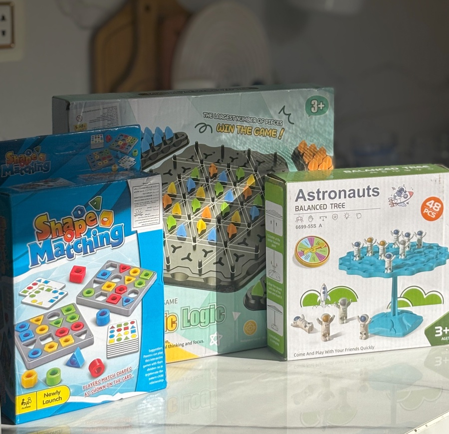 بوكس متكامل فيه ٣ ألعاب بتجمع بين المتعة، الذكاء، والتركيز – للأطفال من عمر 3 سنوات، وكمان الكبار هيستمتعوا بيه!