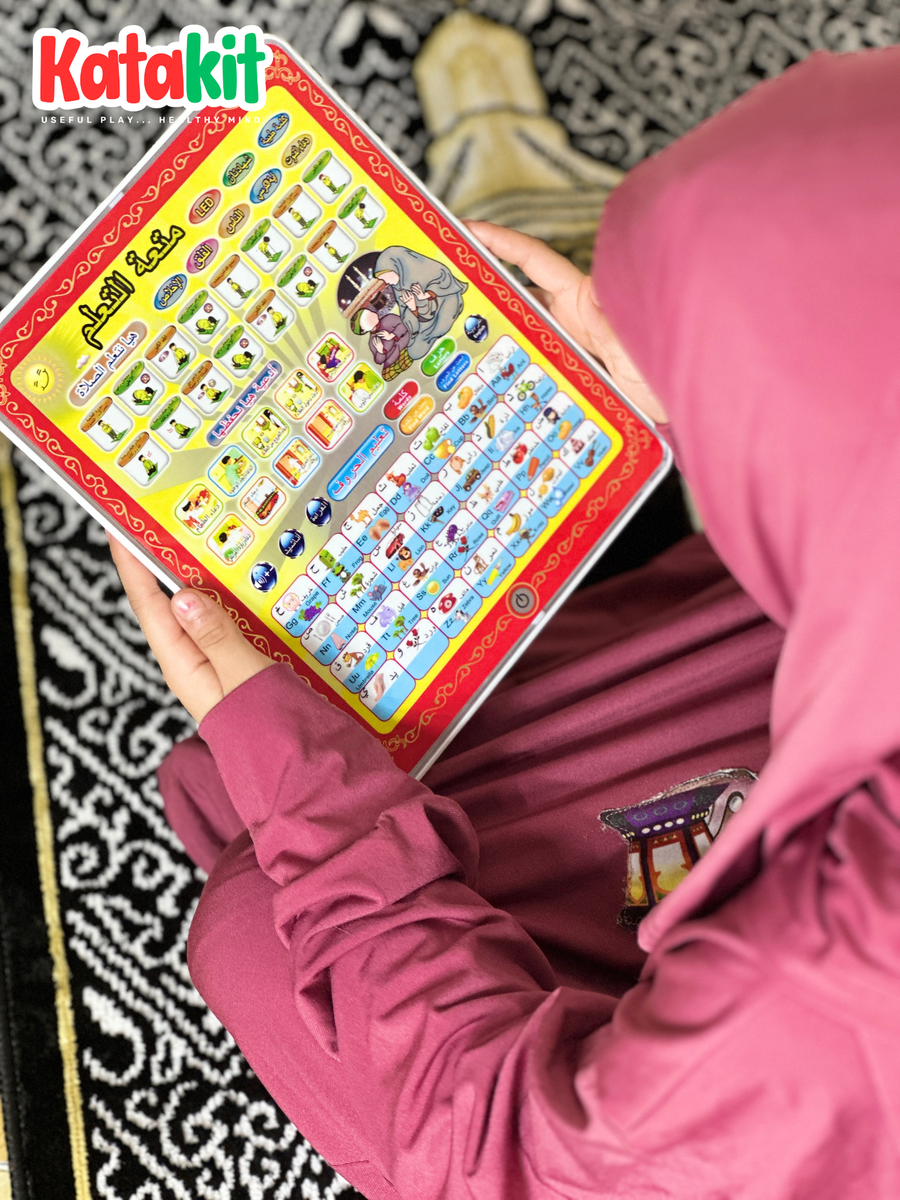 - يعلّم حروف اللغة العربية، الأدعية، وسور قصيرة مناسبة للأطفال.